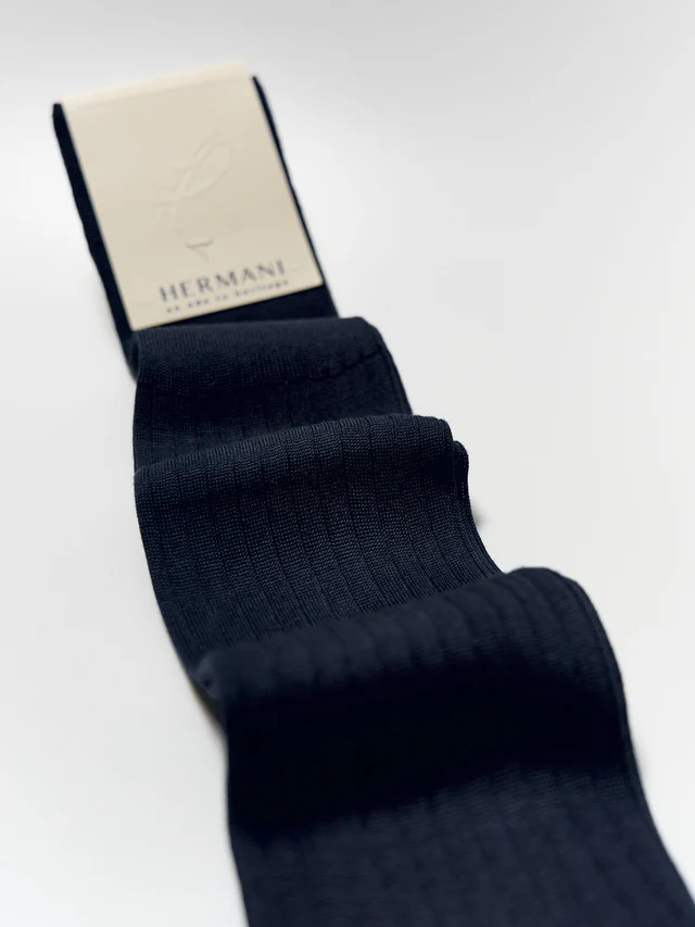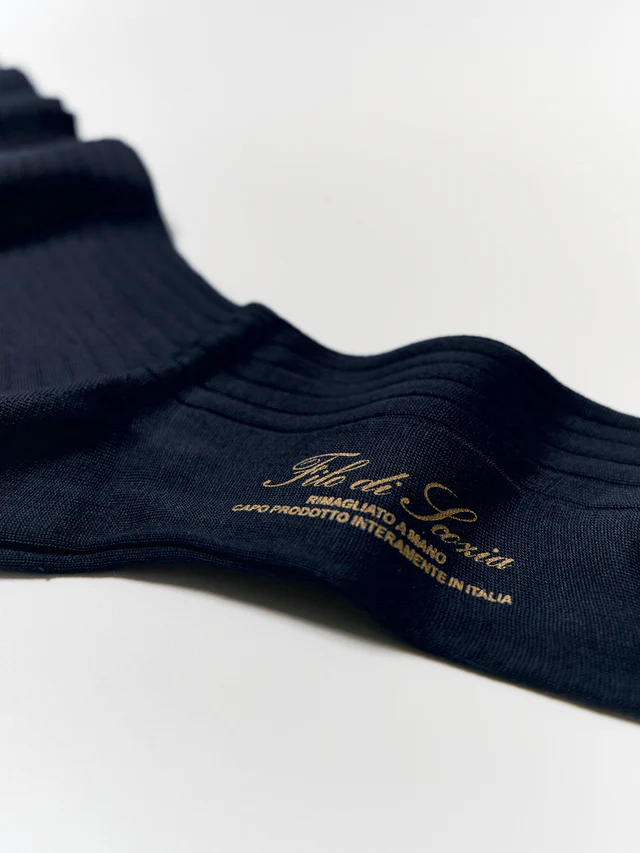 This pure fil d’Ecosse LISLE thread cotton is twisted and mercerized for an excellent fit. The light knit can be worn all year and is an indispensable complement to both elegant and casual dressing. Our rib-knit is finished with an English cuff, which is thin but highly resistant and allows the feet to breathe. Thanks to hand linking, the toe seam is imperceptible. This sock is 100% made in Italy and underlies the European Oeko-Tex standard. This model is available in our classic color palette.