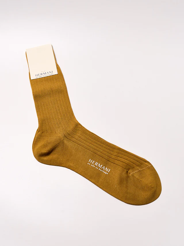 This pure fil d’Ecosse LISLE thread cotton is twisted and mercerized for an excellent fit. The light knit can be worn all year and is an indispensable complement to both elegant and casual dressing. Our rib-knit is finished with an English cuff, which is thin but highly resistant and allows the feet to breathe. Thanks to hand linking, the toe seam is imperceptible. This sock is 100% made in Italy and underlies the European Oeko-Tex standard. This model is available in our classic color palette.