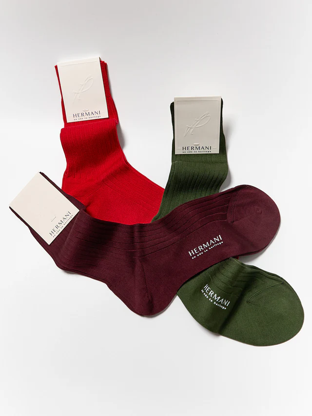 Gift Box: Egyptian Cotton Mid-Calf – Rosso, Oliva, Bordeaux