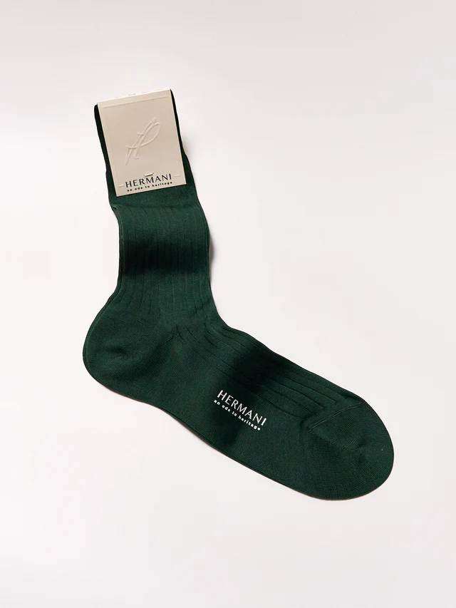This pure fil d’Ecosse LISLE thread cotton is twisted and mercerized for an excellent fit. The light knit can be worn all year and is an indispensable complement to both elegant and casual dressing. Our rib-knit is finished with an English cuff, which is thin but highly resistant and allows the feet to breathe. Thanks to hand linking, the toe seam is imperceptible. This sock is 100% made in Italy and underlies the European Oeko-Tex standard.