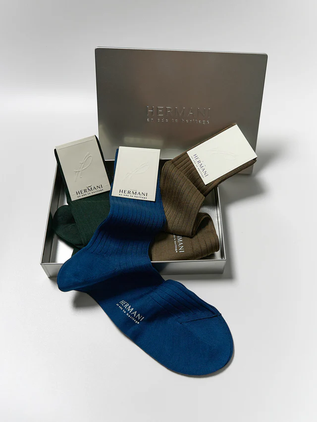 This three-pair gift set is part of our luxury essentials collection and perfectly complements the tasteful attire, both in formal and casual settings. It is the perfect present for a sophisticated sock drawer update and comes in our signature Hermani gift box.