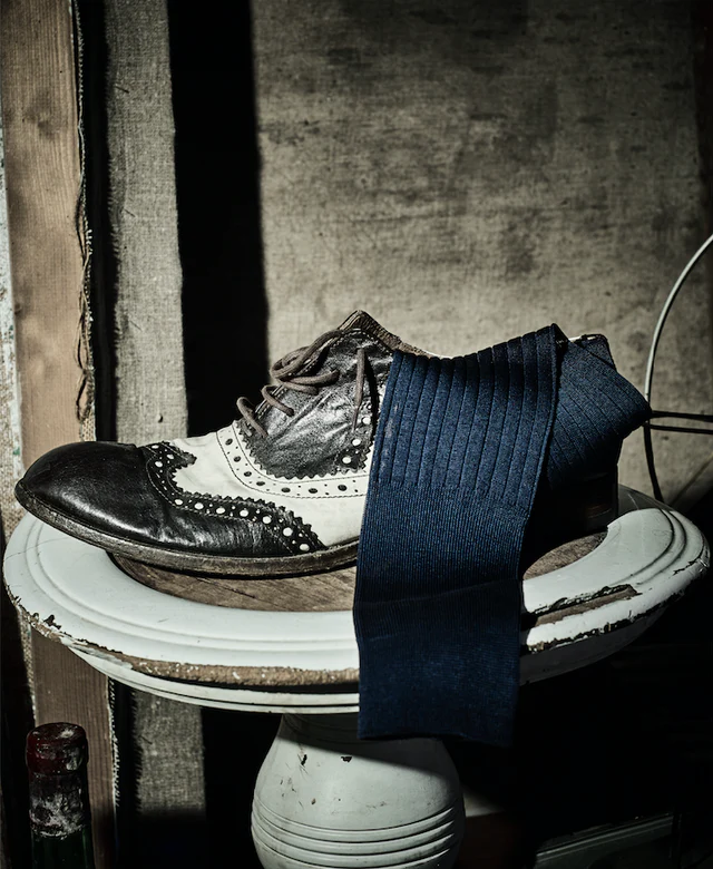 Our premium sock is made from 100% pure extrafine merino wool and offers a uniquely elegant and formal aesthetic, perfect wearability and warm comfort. The unique characteristic of merino wool is that it is temperature-regulating – cooling on warmer days and and warming when its getting colder. This sock is 100% made in Italy and underlies the European Oeko-Tex standard.